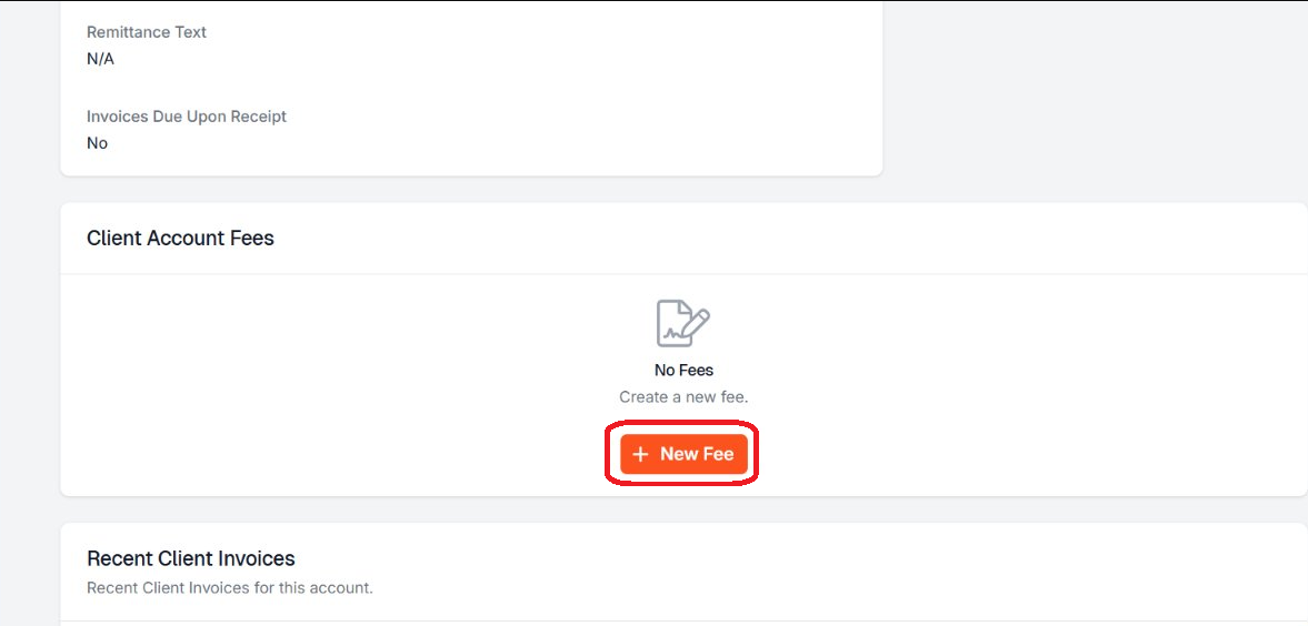 Scroll down to the Client Account Fees section and click New Fee.