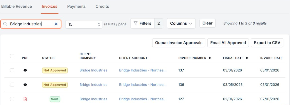 Navigate to Revenue > Invoices, find the newly created invoice, and open it.