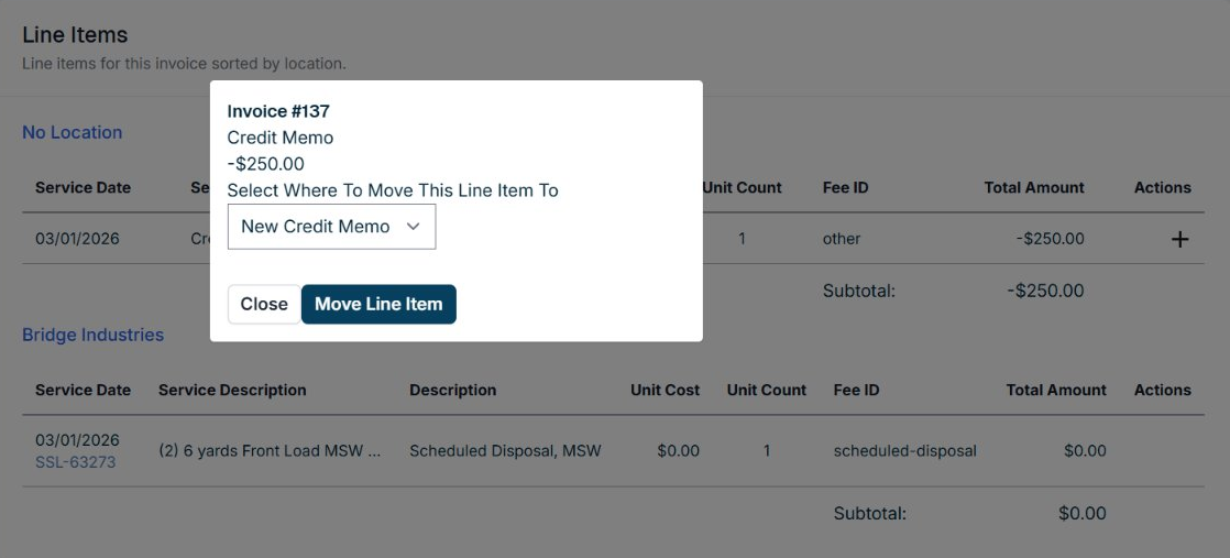 In the modal that appears, confirm New Credit Memo is selected in the dropdown, then click Move Line Item.