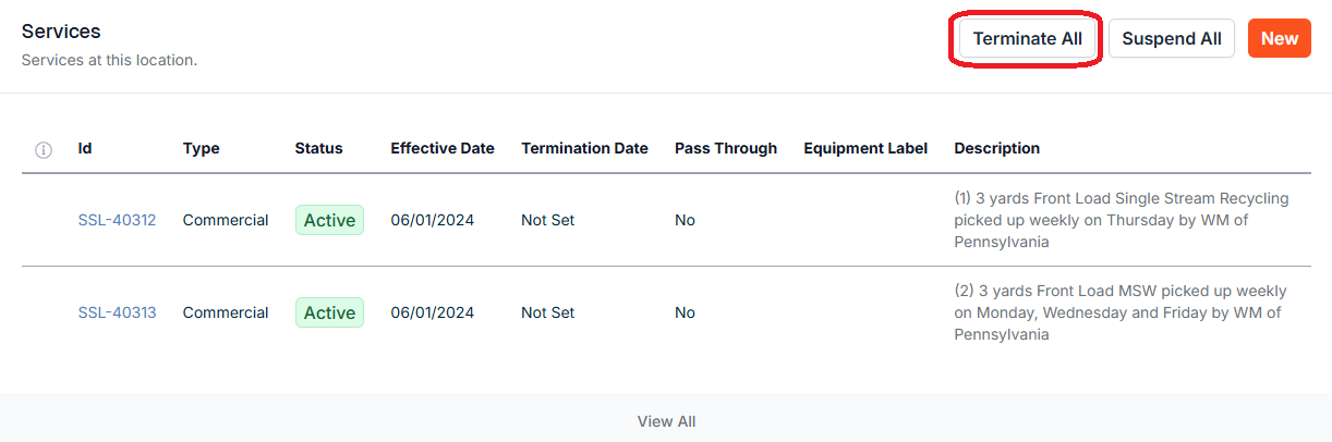 How Do I Bulk Terminate All Services at a Location?