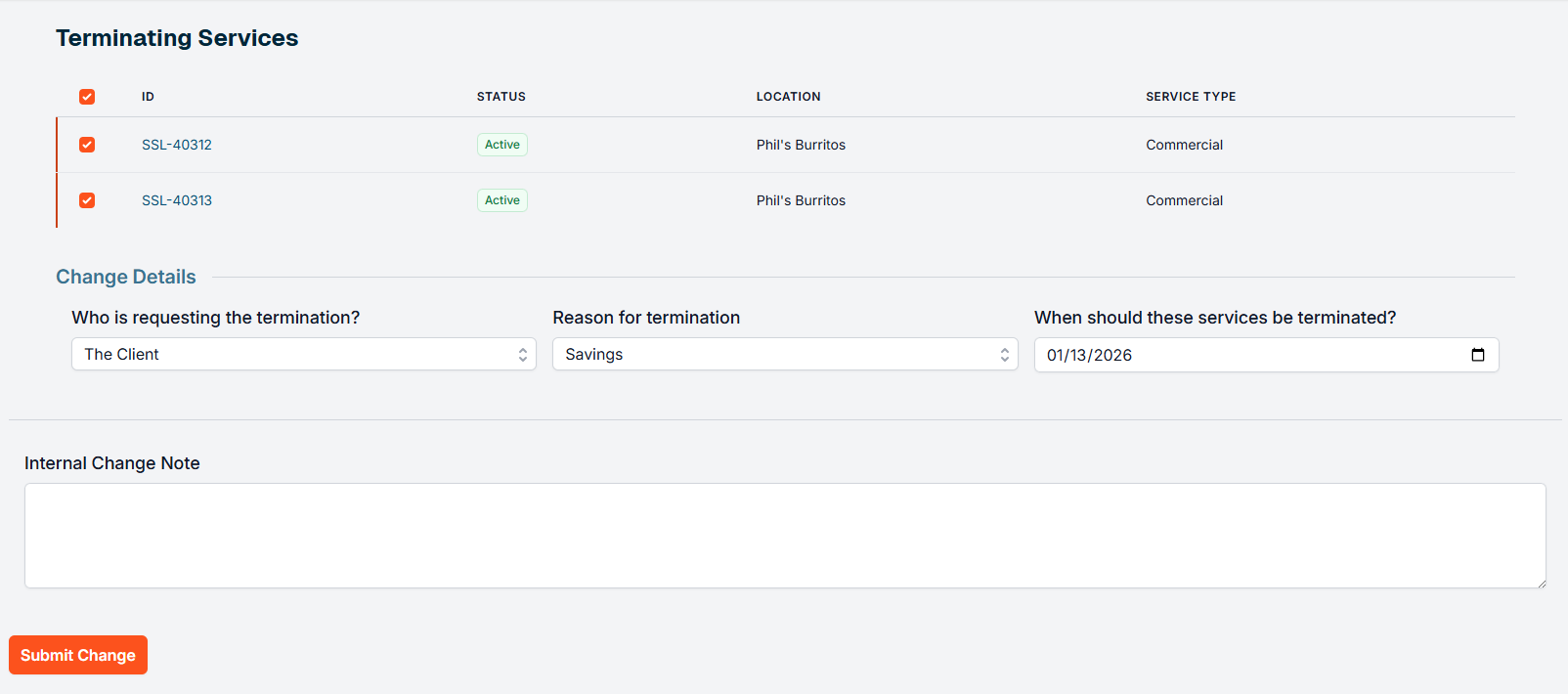 - ✅ All selected services will use the same termination date.
