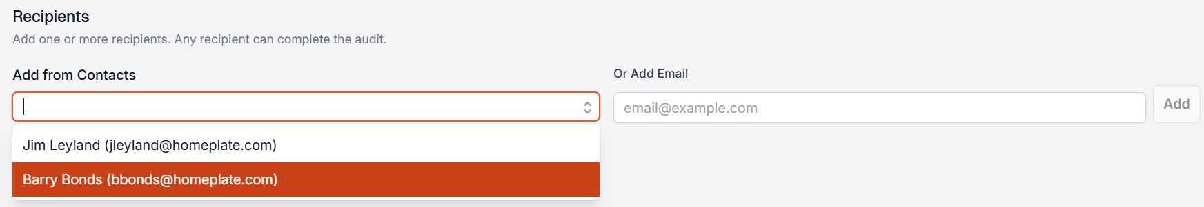 - Pick the recipients. You can select from existing location contacts or add email addresses.