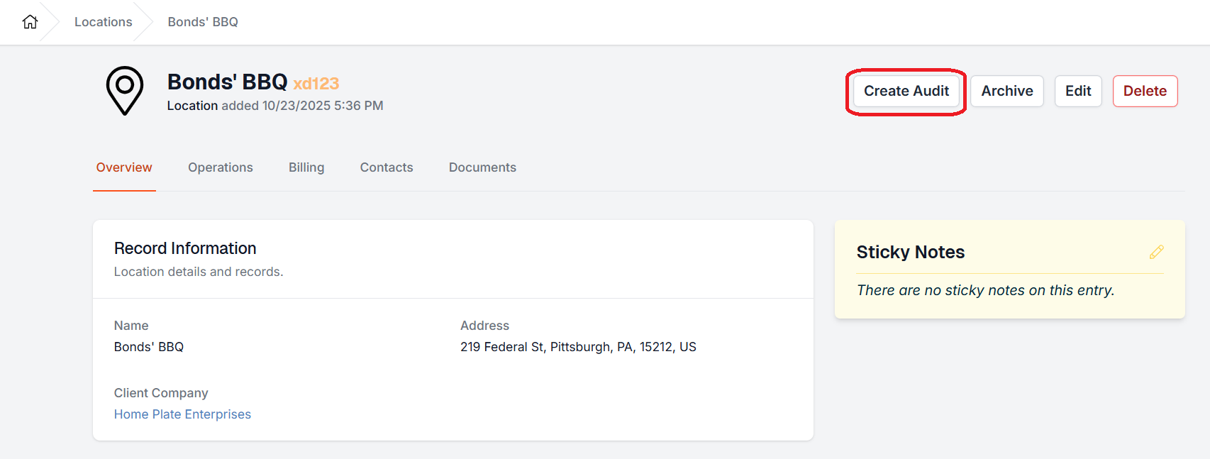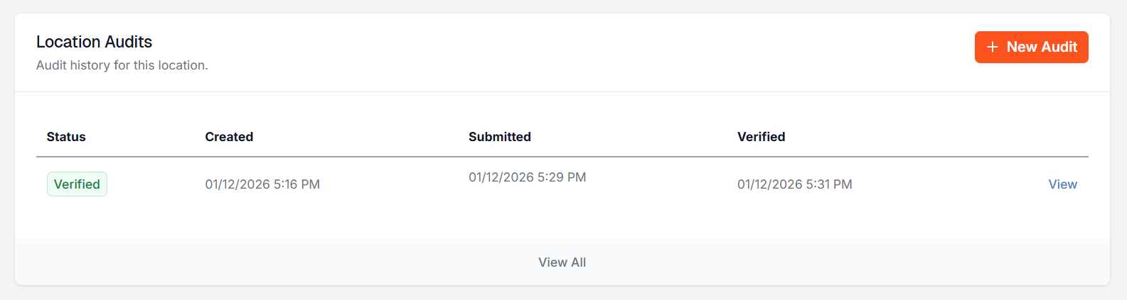 The completed location Audit will appear under the Location Audits heading on the location's Operations tab.