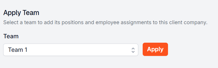 Teams are position templates you define once and apply to multiple Client Companies. When a Team is applied to a Client Company, its positions are copied to that company automatically. If you later update a Team, those changes propagate to every Client Company using it — keeping your position structures consistent without manual updates.