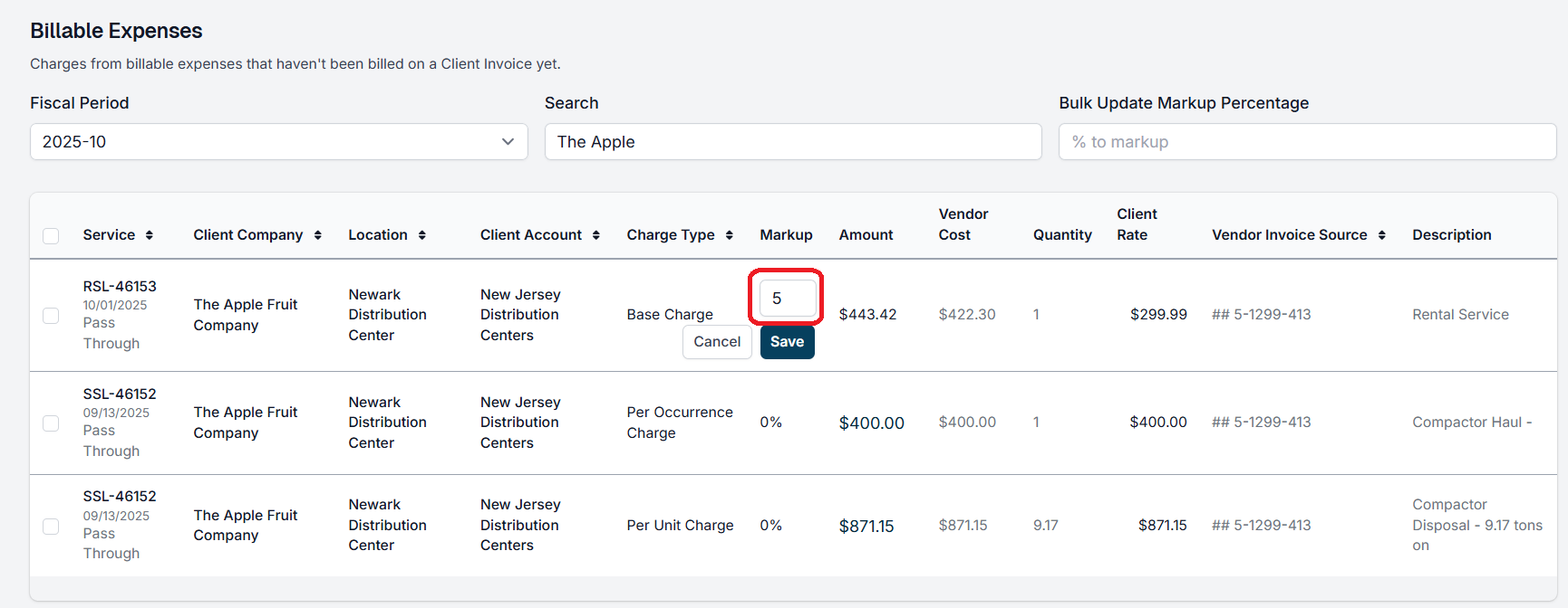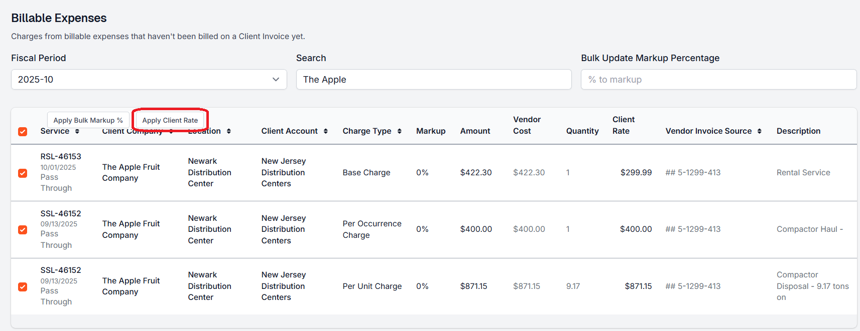 You can also automatically mark up your Billable Expenses to the client rate that's set on the Service. This is a time saver for scenarios where you're billed a Rolloff by a hauler and need to adjust that cost to match the client rate that's set on the Rolloff Service.