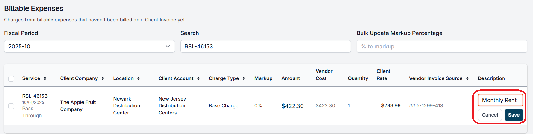 - Once you have located the billable expense you wish to edit, click on its Description.